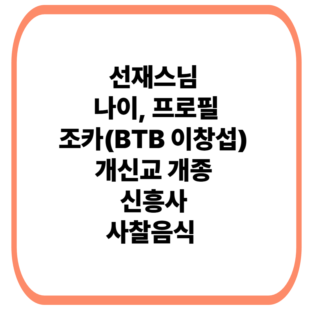 이번 글에서는 선재스님(이용자)의 나이, 학력, 프로필, 가족관계(조카: BTB 이창섭)와 개신교에서 불교로의 개종, 신흥사 수행, 사찰음식 철학까지 상세히 정리했습니다.