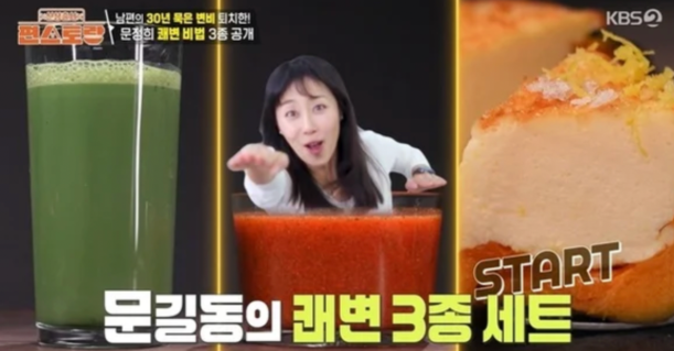 이번 포스팅에서는 문정희표 쾌변주스와 음식 레시피,