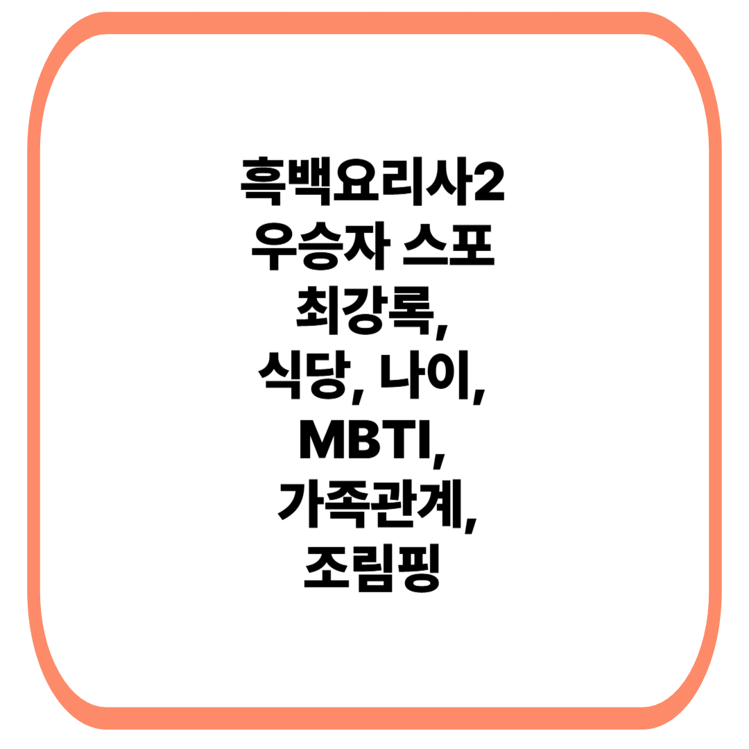흑백요리사2 우승자 스포 최강록, 프로필, 식당, 나이, MBTI, 가족관계, 조림핑 총정리